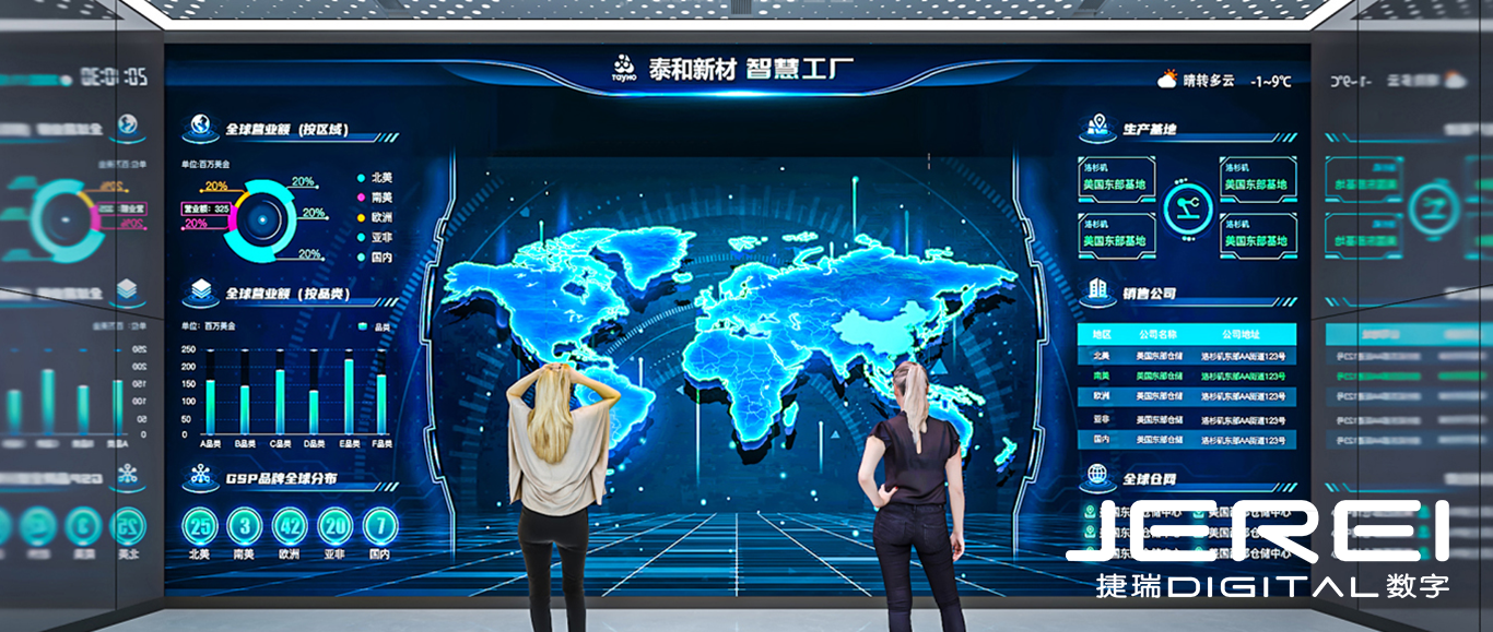 泰和新材數(shù)字展館管理駕駛艙充分利用數(shù)字技術(shù)借助J3D數(shù)字孿生引擎與RBI商業(yè)智能設(shè)計(jì)器的強(qiáng)大功能,將企業(yè)內(nèi)部各類關(guān)鍵業(yè)務(wù)數(shù)據(jù)進(jìn)行整合,并通過伏鋰碼云平臺進(jìn)行高效處理,為企業(yè)提供了全面、精準(zhǔn)的業(yè)務(wù)信息可視化展示,助力企業(yè)實(shí)現(xiàn)高效決策和智能化管理。